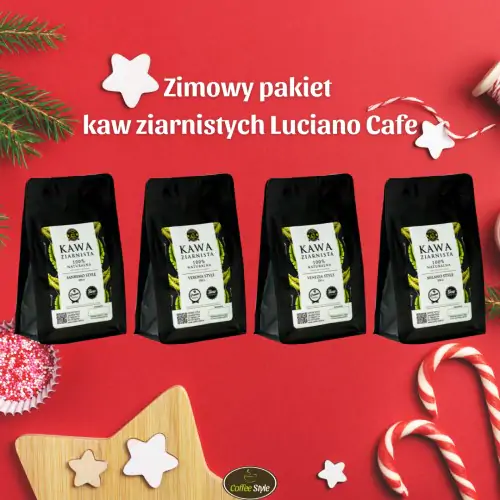 Zestaw startowy zawiera cztery najpopularniejsze nasze mieszanki. Znakomicie sprawdzi się zarówno jako prezent, jak i również jeśli chcesz zamiast od razu kupować opakowania 1000 g, przetestować więcej kaw w mniejszych opakowaniach.