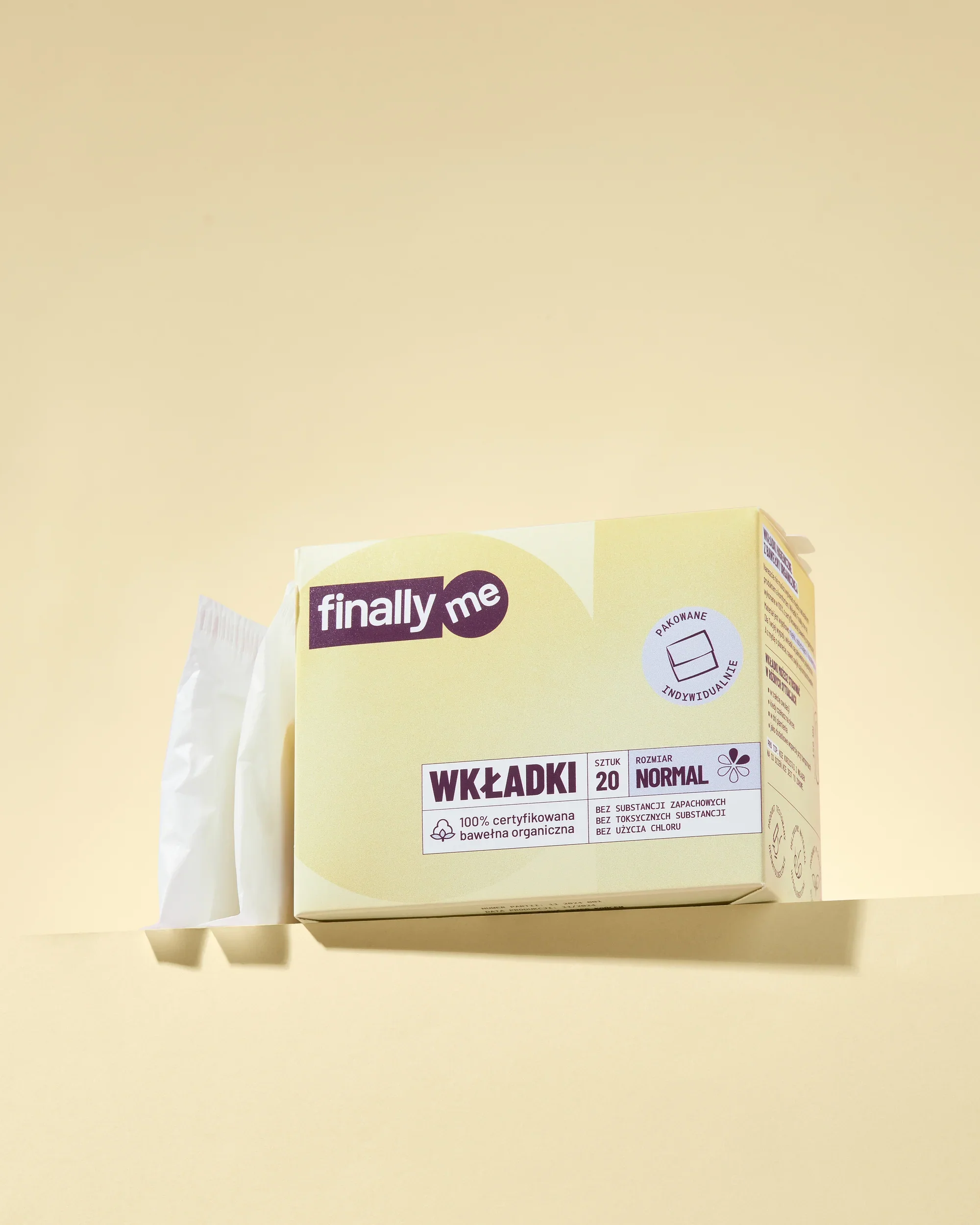 Nareszcie nie musisz wybierać między naturalnym produktem a pewnością. Podpaski Finally.me są wykonane w 100% z certyfikowanej bawełny organicznej i w całości (łącznie z owijką) są kompostowalne.