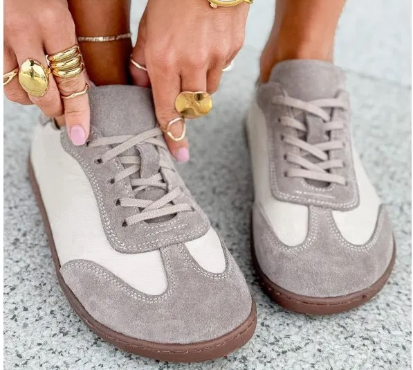 Szaro beżowe trampki barefoot Aleksandra to doskonały wybór dla osób szukających wygody i stylu w jednym. Zostały wykonane z wysokiej jakości włoskiej skóry naturalnej, co gwarantuje nie tylko trwałość, ale również subtelną elegancję. Dzięki elastycznej podeszwie, zapewniają naturalny kontakt stóp z podłożem, co wspomaga ich prawidłowy rozwój i komfort przez cały dzień. Ich klasyczny design w neutralnych odcieniach beżu sprawia, że pasują do wielu stylizacji, od casualowych po nieco bardziej el