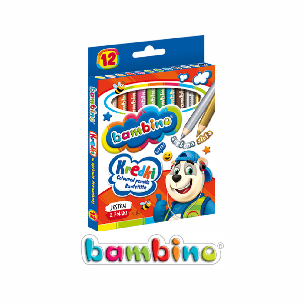 Kredki ołówkowe grube BAMBINO 12 kolorów z temperówką