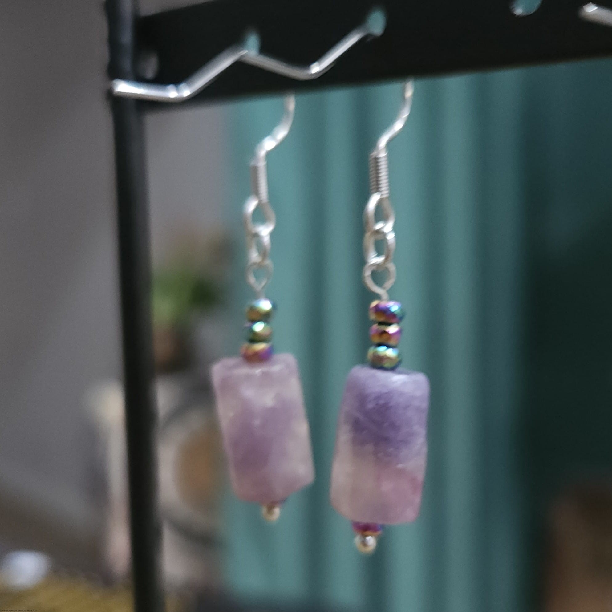 Kolczyki z kamienia Turmalin Śliwkowy i Tęczowy Hematyt kolor srebrny