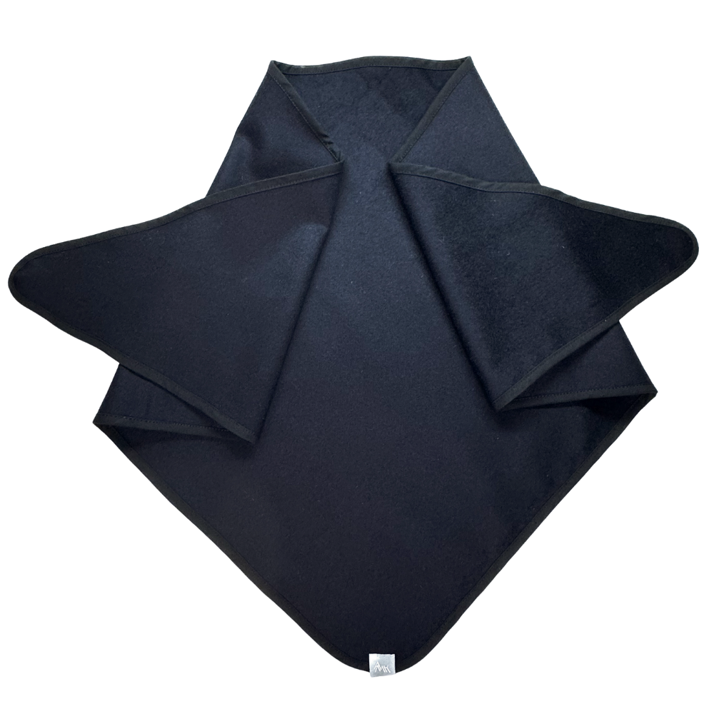 Jej ogromny rozmiar 80 cm x  80 cm sprawia, że można nią komfortowo się otulić i ochronić przed wiatrem. Chusta posiada funkcjonalne zatrzaski, co pozwala także na trwałe zapięcie jej pod szyją.